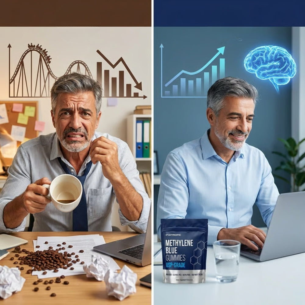 It works at the cellular level. Methylene Blue is a mitochondrial enhancer, which means it helps your mitochondria—the "power plants" of your cells—produce ATP (your body's core energy currency) more efficiently. It's a direct upgrade to your energy production system, not a stimulant.